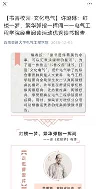 经典阅读活动鼓励了电气学子研读经典名著,增强理论修养,坚定理想信念,提升精神境界,提高了电气学子的文学艺术修养和综合素质,已成为学院教书育人中不可缺少的重要环节。