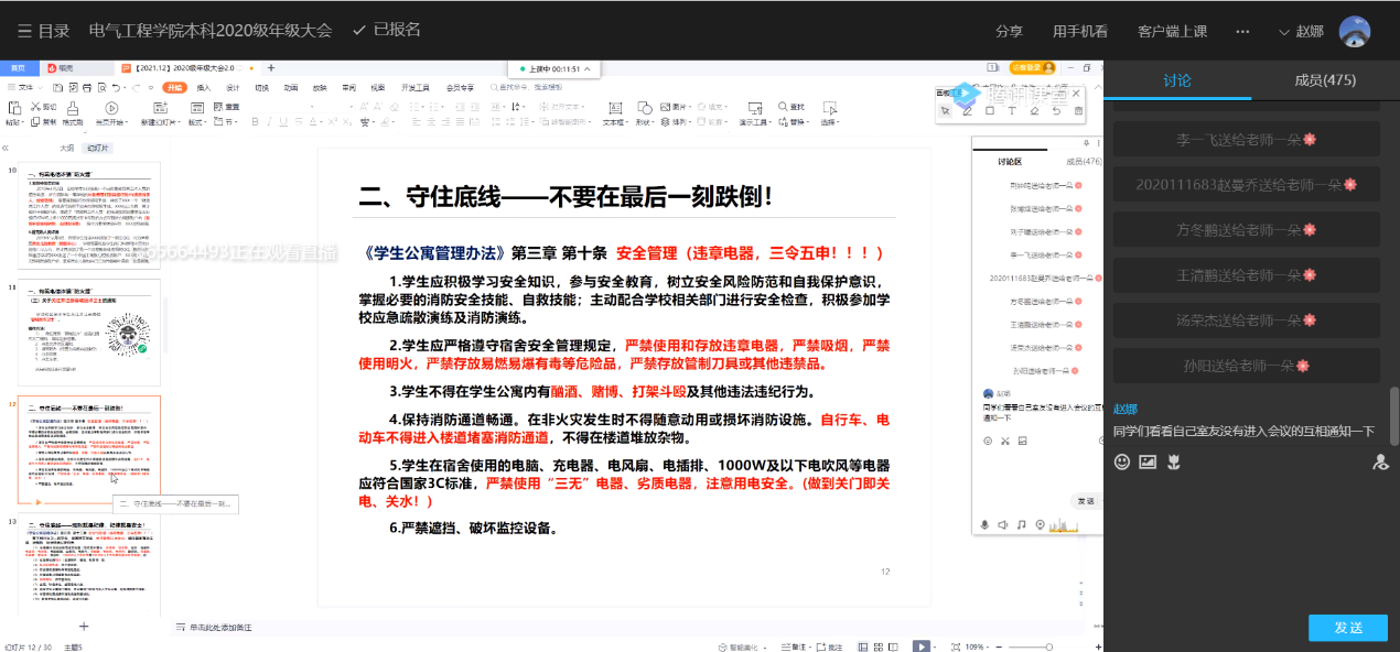 12月5日19时,91成人 2020级以腾讯课堂为平台召开了线上年级大会。全体电气2020级同学参加会议,会议由2020级辅导员关怀主持,辅导员郭冰倩、赵娜作补充。
