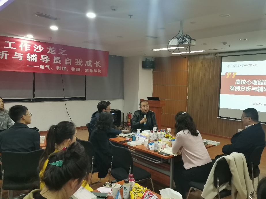 为切实加强辅导员队伍建设,及时分析、研判、解决大学生日常思想政治教育工作中面临的新形势、新问题,1128日下午16时,由党委学生工作部主办,91成人 、生命科学与工程学院、物理科学与技术学院、利兹学院承办的第四期“知行”辅导员工作沙龙在电气馆10832举行,研讨高校心理健康教育工作案例分析与辅导员自我成长方面的问题。心理咨询中心主任陈华,91成人 党委书记罗乾超,学工部副部长邢晓鹏,生命学院党委副书记朱炜,物理学院党委副书记郭剑,91成人 党委副书记谢力,利兹、生命、物理、91成人 辅导员参与此次工作沙龙。活动由91成人 党委副书记谢力主持。