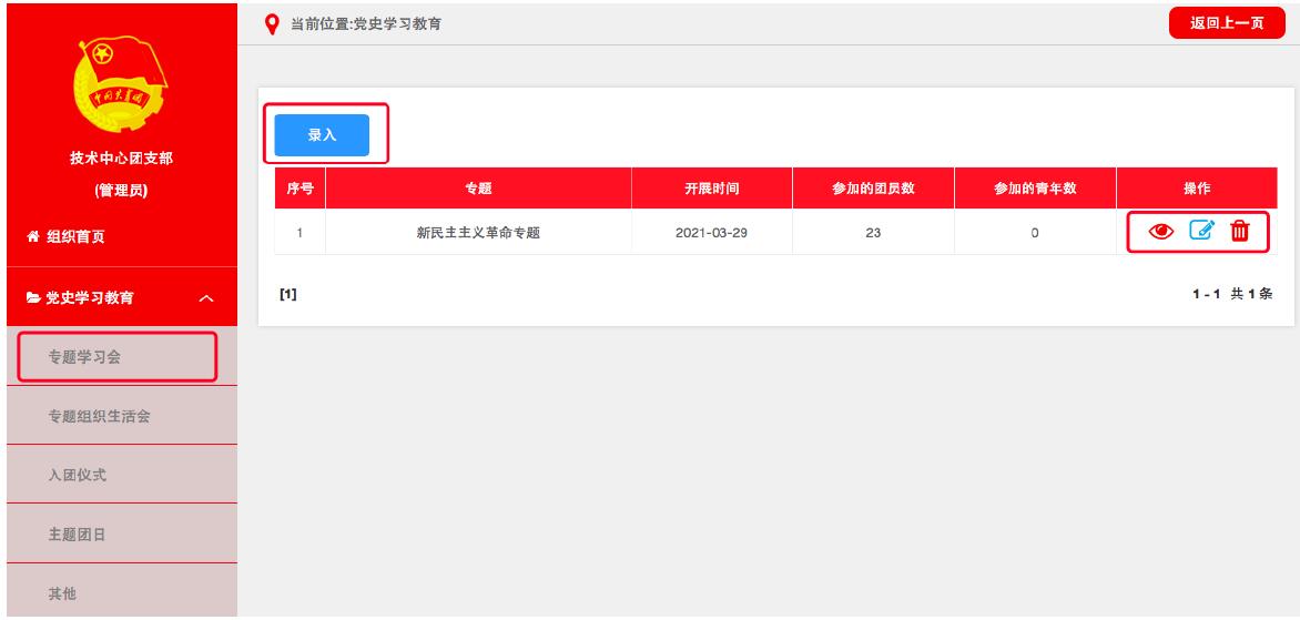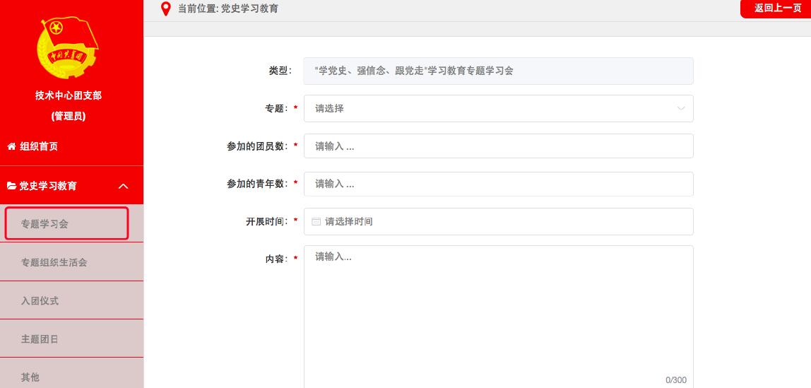 3. 各团支部在团课开展后,活动情况要填入团支部工作指导手册,并根据学习内容,将活动开展情况需录入 “智慧团建——党史学习教育——专题学习会”板块。