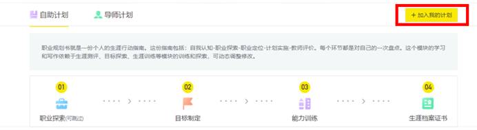 第三步:点击生涯档案,“加入我的计划”,开始自助计划: