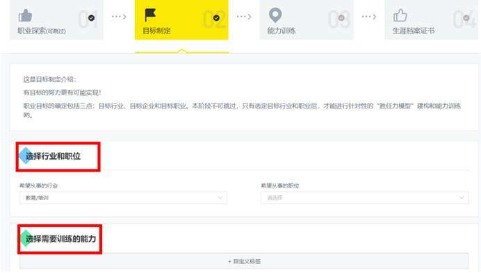 注意:确定自己的目标行业、目标企业和目标职业。本阶段不可跳过,只有选定目标行业和职业后,才能进行针对性的“胜任力模型”建构和能力训练。