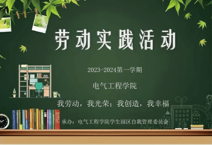 由电气园区发起,各班级自行组织进行校园劳动实践,要求各班全体同学必须参加。劳动内容主要包括: