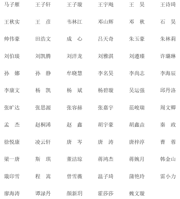 经学生民主评议、党支部推荐、学院党委预审,拟将以下同学列为中共预备党员发展对象,名单如下(按姓氏笔画排序):