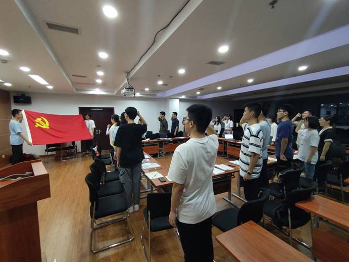 会议的最后全体同志面对党旗进行庄严宣誓,也向大会表达了自身的想法与决心,不忘初心跟党走,在今后的学习工作中,坚定目标、严格要求自身,努力改正现有不足,积极向优秀共产党员学习,树立先锋模范作用。