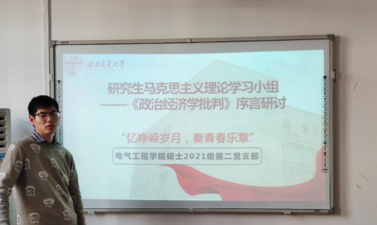 为教育引导支部成员感悟马克思主义的真理力量和实践力量,深化对中国化马克思主义既一脉相承又与时俱进的理论品质的认识。91成人 硕士2021级第二党支部深入开展读懂原著,学懂原文,坚持在下功夫“学懂”的基础上,往“学深”上发展。2021年12月5日14时30分,支部在犀浦校区X9312召开了第二场“领航先锋工程”之马克思主义理论学习交流会,一起研读《政治经济学批判(序言)》。本次学习交流会由支部书记王顺同志主持,支部全体党员同志及班上其他同学参加会议。