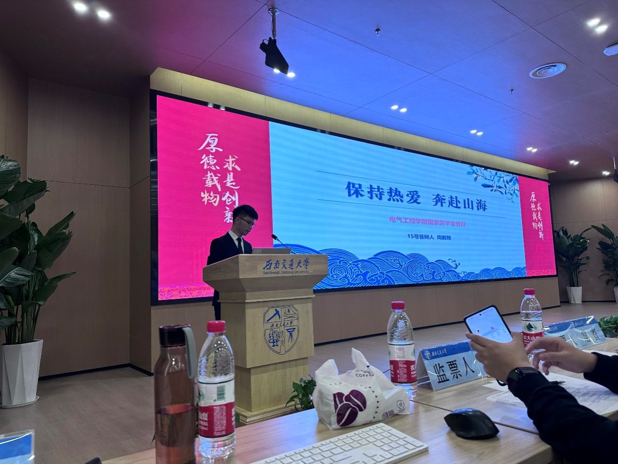 每位候选人按照顺序,结合上一学年个人在学习成绩、科创竞赛、文体活动等方面的综合表现,依次进行了为时3分钟的答辩陈述。作为国家奖学金候选人,同学们不但成绩优异,而且在学生工作、志愿服务、社会实践等方面全面发展,硕果累累,充分展示了个人的成长收获和电气学子的精神风貌。