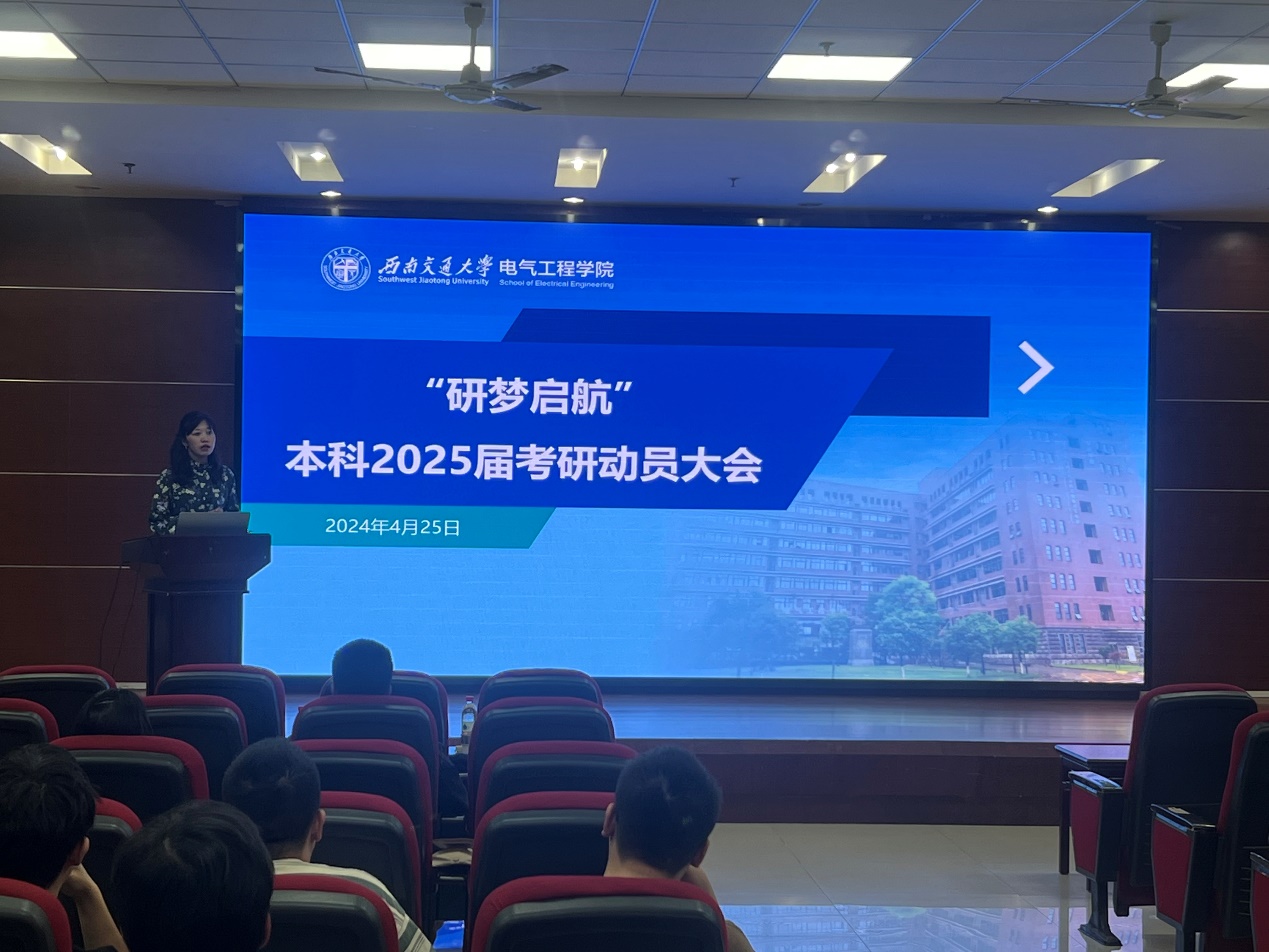 为充分调动学院本科2025届毕业生考研积极性,激发考研动力,帮助同学们了解考研形势及目标,推动学院学风建设,4月25日下午14时30分,学院本科2021级于犀浦校区四食堂三楼320召开“研梦启航”本科2025届考研动员大会,学院党委副书记谢力、本科2021级辅导员以及全体考研同学到场参会。会议由本科2021级辅导员谢东旭主持。