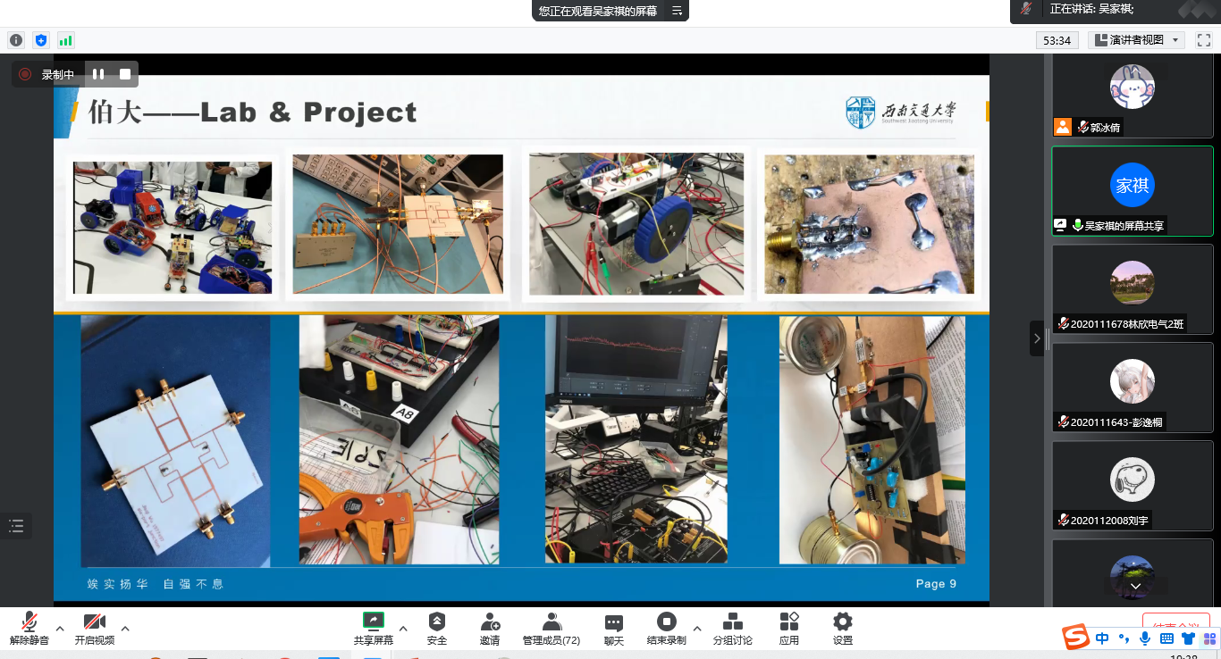 为帮助同学们更好地了解出国留学流程、做好出国相关准备,明确努力方向,8月19日晚19时30分,91成人 举办了“电气”脚尖,迈向世界——海外留学经验分享会。本次分享会由91成人 本科2020级辅导员郭冰倩主持,同时邀请了拥有丰富留学经历的本科2016级电气工程及其自动化专业的吴家祺同学和本科2018级电子信息工程专业的韦雨声同学分享自身的留学经验与心得,帮助同学们更加深入地了解留学申请流程,专业及院校选择、海外学习生活和留学就业前景等方面信息。
