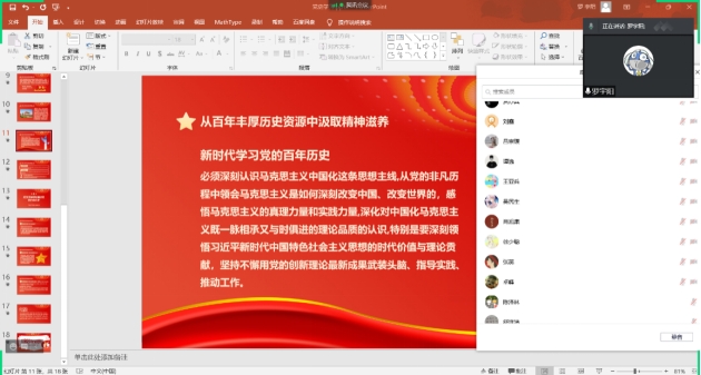 今年是中国共产党百年华诞及“两个一百年”奋斗目标历史交汇的关键节点。9月24日,91成人 硕士2021级10班在线上召开了“百年潮起共读史”党史学习交流会,感受中国共产党一路走来的艰辛与辉煌。班级党支部全体成员参加了交流。