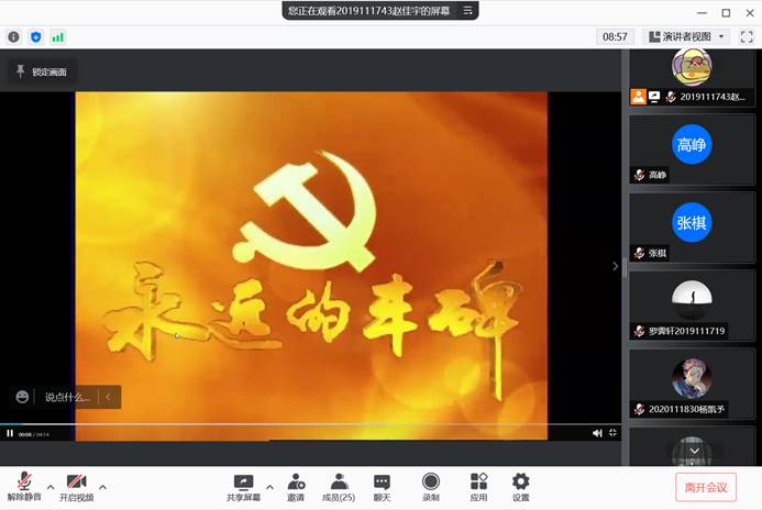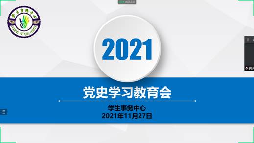 2021年11月28日晚20:00,91成人 学生事务中心全体成员在腾讯会议线上展开了观看党史学习教育。