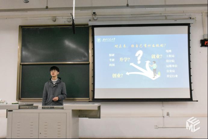 殷子浩首先讲述了他转到电气专业从零开始到专业排名靠前的过程。他表示,“千里之行始于足下”,同学们一定不要害怕失败和困难。接着,他谈到了同学们在大一时应着重注意的事项。在后续的专业学习和科研以及竞赛上,他也给出了他独到的见解。最后,他希望同学们能够做到“青出于蓝而胜于蓝”,在平凡的大学生活中创造各自的辉煌。