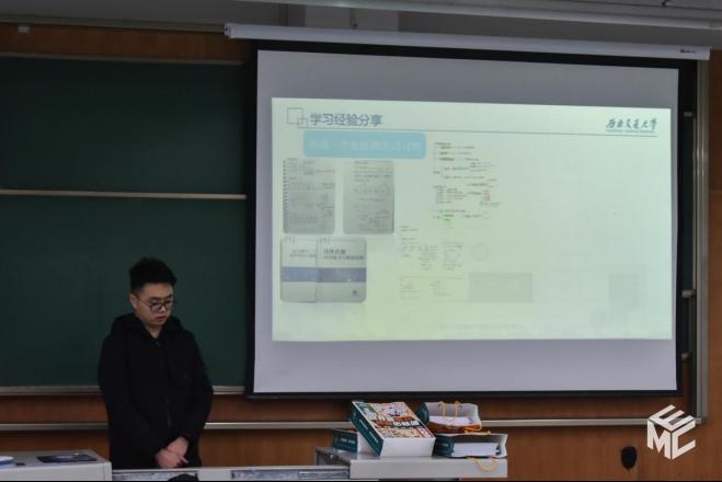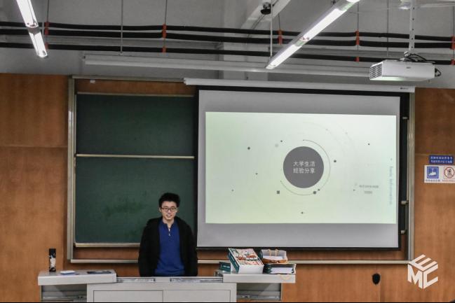 郭辰宇主要分享学习和科创经验。在学习上,高中与大学不同,大学生应该明确自己的目标,要养成良好的学习习惯,要有良好的学习环境。他分享自己的学习方法:合理运用网课资源;合理安排自己的时间例如制定计划列表;考试要提前准备,梳理知识点,回归课本。在科创竞赛上,他劝诫同学们不要被失败打到,找到合适的队友,及时与老师沟通等。最后,他向学弟学妹们建议:对未来做规划,坚持锻炼和为目标而奋斗。