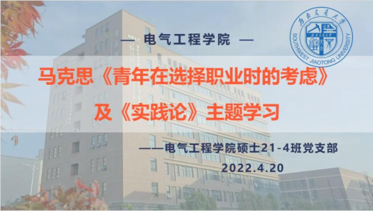 为深入学习贯彻习近平新时代中国特色社会主义思想,提升学生党员的党性修养和思想觉悟,91成人 硕士2021级第四党支部4月20日,在犀浦校区天佑斋3栋红色驿站面向支部全体党员和班级其他同学开展了第二期马克思主义理论学习活动——《青年在选择职业时的考虑》及《实践论》学习会。