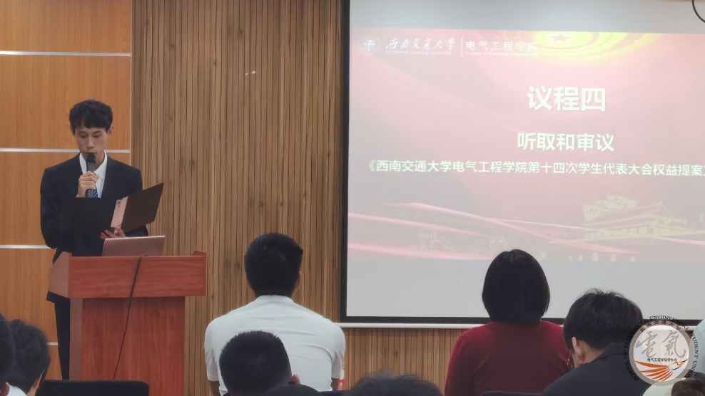 大会第四项议程是91成人 权益负责人罗霁轩同学向大会做关于第十四次学代会提案征集工作情况的报告。罗霁轩同学在报告中汇报了91成人 第十三届学生委员会不断改善工作方法,优化工作流程,完善“提案+数据”权益服务机制,认真落实“校-院-班三级联动”制度等一系列工作。此外,91成人 学生会权益部联合生命科学与工程学院学生会举办了校级大型权益创新活动——权益节,以游戏的方式让同学们学习更多的权益知识。截止2022年5月,学生会共收到提案119份,有效提案109份,有效率达91.6%,经过学生会统计整理与归纳合并,最终上交提案30份,自第十三次学生代表大会以来,学生会共举办四次权益大会,推进日常权益工作的顺利进行,保证同学们权益提案有处可提,保障了同学们的合法权益,满足了同学们对于解决权益问题的诉求。