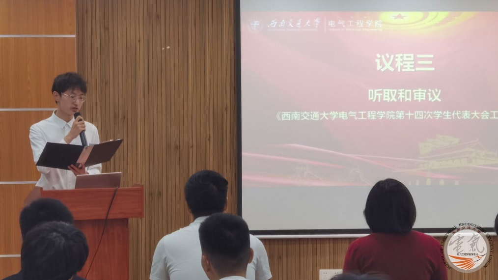 接下来由91成人 第十三届学生会主席团成员赵佳宇同学向大会做第十四次学生代表大会工作报告。报告中指出学生会将继续全面落实团中央关于学生会深化改革的意见:一、优化组织体系,精简人员机构;二、改革运行机制,强化组织领导。一直以来,91成人 学生会始终坚持建设先进思想的引领组织,深化网络建设,强化舆论引导,深入学习习近平新时代中国特色社会主义思想,夯实理想信念。91成人 学生会以坚定理想信念教育为核心,以培育和弘扬社会主义核心价值观为基础,以“五个电气”为工作抓手,厚植爱国爱校情怀,打造电气品牌活动。