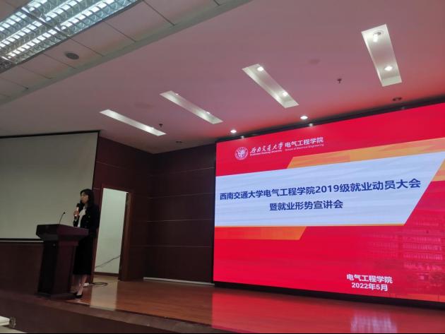 2022年5月19日16时,91成人 2019级就业动员大会暨就业形势宣讲会于犀浦校区四食堂三楼320室举行。本次活动邀请学院党委书记罗乾超、学校招生就业处副处长黄春蓉、学院党委副书记谢力、2022届辅导员林静英为同学们分析最新就业形势,旨在帮助2019级的同学们能够更好地了解目前的就业形势,做出正确的选择。本次大会由学院党委谢力副书记主持。