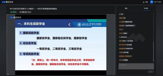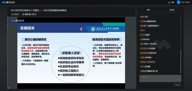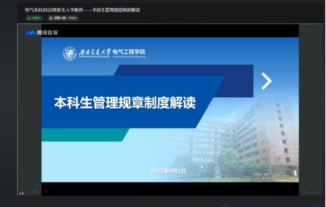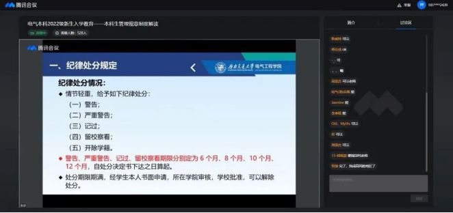 2022年9月1日14:30,91成人 本科2022级新生召开《本科生管理规章制度》解读会。应疫情防控要求,本次新生入学教育以线上会议的方式进行,2022级辅导员张异老师主讲。