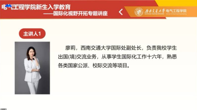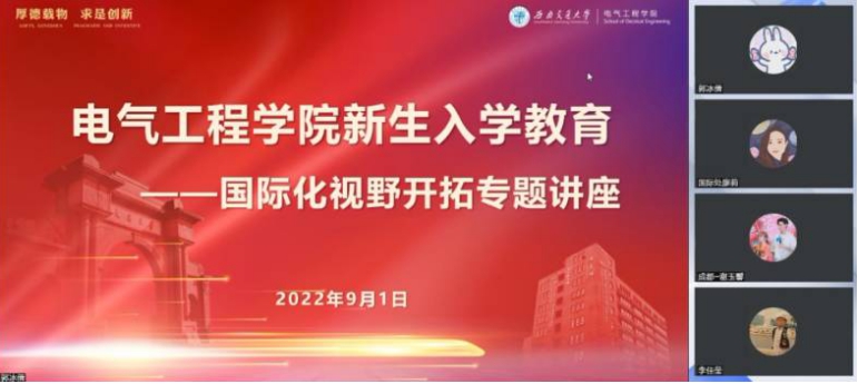 2022年9月1日晚19时,为帮助新生增强国际视野,树立国际化意识,91成人 开展了新生入学教育之国际化视野开拓专题讲座。学院特别邀请了国际处副处长廖莉老师作为主讲人,会议由2020级辅导员郭冰倩老师主持,学院2022级本科新生共同参与本次活动。