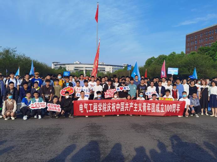54日上午,91成人 党委副书记谢力、团委书记张异、学工组老师们和青年团员代表在犀浦校区国旗台参加庆祝中国共产主义青年团成立100周年升国旗仪式。