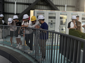 在讲解后,实践队员结合自身的学术科研背景分别与现场工程师进行技术交流。2022级博士班党支部书记刘芸江就“全功率变速恒频抽蓄机组”变流器的设计优化及控制策略同厂务工程师进行探讨,对于如何兼顾高效率、宽调节范围进行技术交流2021级博士生左运结合自己的研究内容针对项目中的“变速恒频”功能表达了自己对该变流器设计的理解和想法得到了现场工程师的肯定并进行了深入的探讨对于水光蓄电站联合运行及智能调度系统2022级博士研究生罗嘉明表示,“要做到毫秒级的相应速率是十分困难的,在能量的利用上不仅要考虑时间跨度的影响,在空间尺度上还需考虑各个电站的实时出力,才能实现全局的能量最优利用与安全保障”。此外,针对电厂的继电保护、容量配置、设备选型及施工方法等问题,实践队员与厂务工程师进行专业的技术交流得到了一致好评