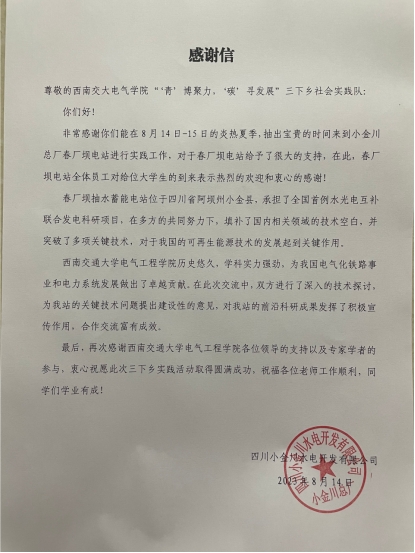“我本是彝族人,老家在凉山州”尔沙厂长说道,“作为一名水电人,工作几十年来,接手了很多大大小小的项目,去过很多地方,最后在小金安了家”,“春厂坝电站从建成到运行遇到了无数的困难,但正是依靠从前的工作经验,才得以解决。小金的民生工程与经济发展离不开这些水电系统,再多困难也要解决,这是一个国企的担当,也是我们个人的社会责任”。四川作为中国水电的第一大省,春厂坝电站的装机功率仅占四川省全省水电装机功率的万分之六,但也折射出万千水电人的生活日常与奉献付出。2021级博士生左运感慨道“参观完春厂坝水电站后,我深有感触,项目的完成离不开祖国的强大和各级单位的全力配合同时我也坚定了在电力行业深耕的决心我将牢记习近平总书记对青年的嘱托,将个人命运与电力行业的命运,以及国家的命运紧紧联系在一起,努力实现自我价值助力“双碳”目标早日实现!”