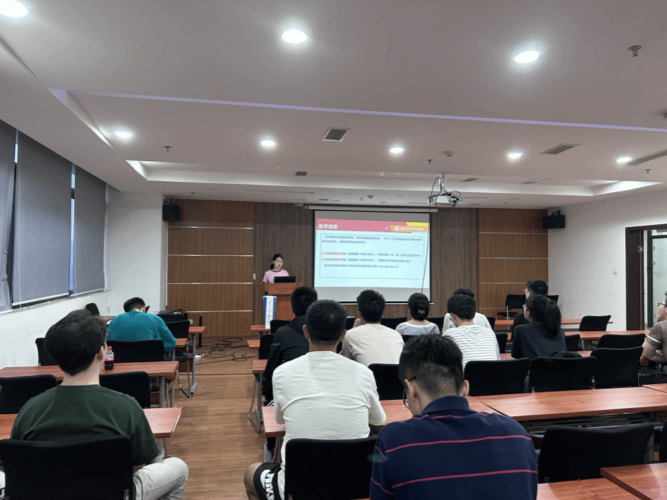会议第一项议程,入学须知介绍。辅导员沙静馨首先详细介绍了教务报导流程,其次对助学贷款、入学体检安排、党组织关系转接、团组织关系转接、医疗保险购买、户口迁移等新生入学手续政策等进行了解读。