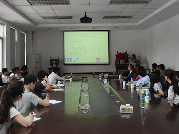 博士微笑着走进会场,看着热情的同学们,他也显得分外高兴。在主持人做了简短的介绍之后,我们的讲座正式拉开帷幕。讲座刚开始,Ralph Kennel博士就对当今世界控制技术方面的发展现状做了简单介绍。他说,虽然过去的几十年内,传统的PID+PWM这种控制方式得到了迅速的发展和广泛的应用,但由于近些年数字信号处理器的运算速度越来越快,一些新的控制方法随之产生。其中,模型预测控制灵活度高,可用来处理复杂多变量的耦合系统,它被认为是工业上最有潜力和前途的先进控制算法,这也是为什么这种算法在电力电子领域中的应用会引起各国学者的关注。