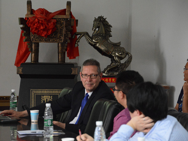 在讲座结束前,Ralph Kennel博士还专门预留了时间让在场的同学们提问,由于有的学生英语水平有限,所以由主持人帮助翻译。对于学生们提出的问题博士都一一认真解答。在这样融洽而又充满学术气息的氛围里,我们的讲座也圆满地落下了帷幕。