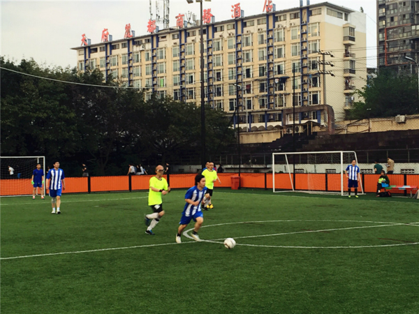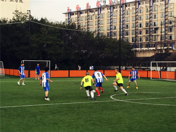 在主席致辞、裁判员宣誓、运动员代表宣誓等一系列开幕流程后,由西南交大足球协会会长宣布比赛正式开始。下午6时45分,91成人 教职工足球队与机械学院教职工足球队在2号场地开始比赛。双方球员都很快投入到比赛中,跑位积极,盯防严密,双方你进我退、你攻我守,实力相当。上半场比赛由于我方盯防疏漏被对方前锋攻入一球,下半场我方调整了战略战术,采取全场逼抢战术,开场八分钟我方取得一次角球机会,球传出后,我方前锋头球攻门,皮球径直飞入球门远角,我方扳回一球,士气大涨,但高强度的对抗使得我方队员体力消耗很大,接下来的比赛中,我方队员们仍奋勇争夺,坚持到比赛最后一分钟,最终91成人 1:3惜败。