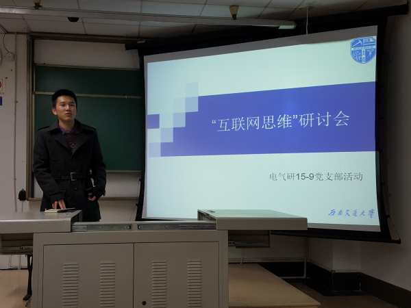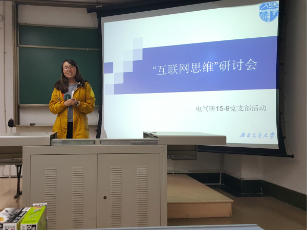 2015年11月30日,电气研15级9班举行了以“互联网思维”为主题的党支部特色活动。此次活动旨在让大家开阔思维,发现机遇,把握机遇。