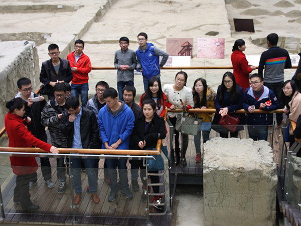 2015年11月26日下午1时30分,91成人 2015级研究生5班的同学们来到著名的金沙遗址博物馆开展本学期的班级活动。本次活动共组织了班级20名同学来到金沙博物馆参观学习,感受悠久的金沙文明。