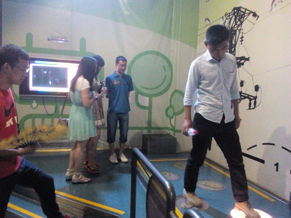 接着,我们参观了三楼光学馆、声学馆、动力学馆,还有四楼生命科学馆,跟一群小朋友走近了一间化学实验室。这件实验室只有一个实验器材柜立在墙角,前面一张桌子,桌子前围坐了一些小朋友。这里有好多小朋友,他们在这里玩的好开心啊。玩的过程中去学习一些新知识。这种寓教于乐的做法真是值得借鉴。