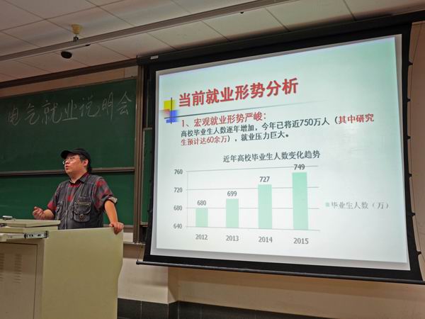 随后,负责电气研究生毕业就业工作的辅导员王喆桅老师向所有在场学子介绍了91成人 历届的毕业生就业情况。王老师先对近几年的就业形势进行了分析,王老师指出,近几年高校研究所毕业数量仍呈逐年上升趋势,加之宏观的一些经济影响,研究生的就业形势依然不甚乐观,但可庆的是91成人 的就业率一直接近100%。随后,王老师详细的列出了14级毕业生的就业信息的数据归纳。同时,针对所呈现的数据,王喆桅老师列出了五个关键因素,供大家以后在找工作的时候做详细考虑,分别是:待遇、发展、地域、生活压力以及个人情感问题。五个因素可以说从各个方面涵盖了我们对以后工作的所需所求。王老师表示,极少有人可以同时满足这五方面的需求,但凡满足三个以上,就请同学们能够知足于该份工作,切勿好高骛远。王喆桅老师还与大家分享了近年来一些找工作的正例及反例,供大家学习或参考。最后,现场同学对自己关心的就业问题进行了提问,王喆桅老师也一一进行了回答。