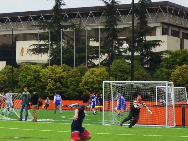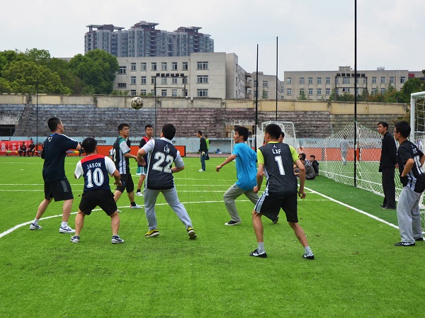 4月7日中午12:30,在九里校区足球场上,91成人 院际足球比赛小组赛正式拉开帷幕。这场比赛分为四个对决小组,他们的比赛同时段进行的。随着裁判们的哨子声,各个比赛场地的同学们好像离了弦的弓箭一样,在各自的比赛场地飞奔了起来。