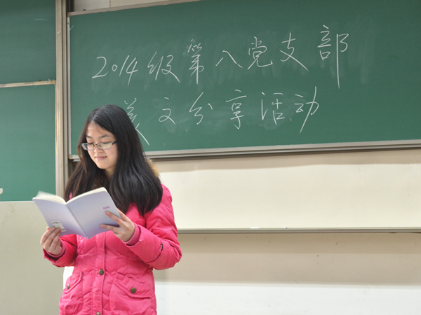 12月21日上午11:30,91成人 研14级第八党支部在逸夫馆4223举行了“运动健体魄,美文感人心,朗诵抒情怀”系列校级示范党支部特色活动之“书香四溢,我为支部荐好书”的美文分享活动。活动旨在帮助同学们养成良好的读书习惯,掌握正确的读书方法。支部成员齐聚一堂,对本学期经典阅读情况进行汇报,交流心得,分享感受,学习方法。