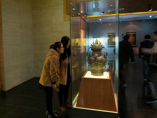 接下来我们参观了二层的青铜馆,它主要分为竹瓦烟云、马家王气、百花流芳、涪陵遗韵、羊子余晖五个部分,共展出自西周至战国文物共271件(套),一进入馆中,迎面而来的都是各种青铜器,瞬间带我们到了一个青铜繁盛的时代。接着来到中国书画精品馆,里面展示了省博物馆所藏历代书画精品,分为唐宋元、明、清、近现代四个部分。