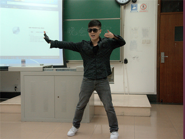 晚7点左右,参加评审的工作人员和部分观众陆续进入到教室内,对同学们即将开始的表演都满怀期待。正式排演于7:20开始,出场次序是按照迎新晚会现场次序预先商定的,歌曲类节目照例摆在开头,既有男女混唱、个人独唱,又有班级合唱。有的歌曲还加入了同学们自己创造的小舞蹈,充分凸显了同学们的青春与活力,其精彩表现不断引起现场观众的喝彩与掌声。舞蹈类节目更是动感十足,专业的舞步配上旋律感超强的背景音乐,加上表演者精心搭配的那副酷黑的墨镜,真有一种引燃全场的效果。语言类节目也是惊喜不断,作为晚会的重头戏,演员们在排演中拿出了正式迎新晚会的认真劲儿,逗得现场观众和评委们喜笑连连。整个教室洋溢着由衷的热情与喜悦。