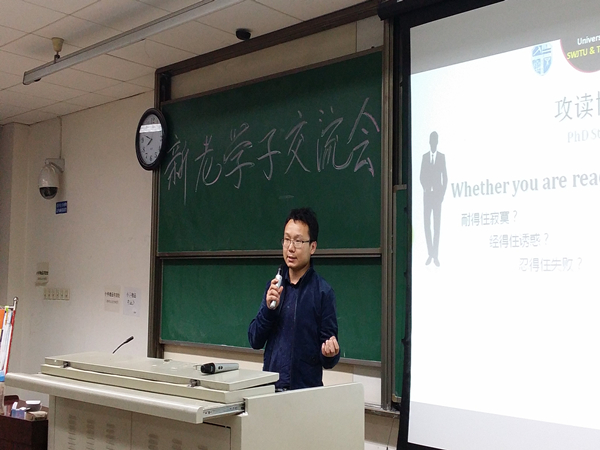 10月30日晚7:00,新老学子交流会在九里校区逸夫馆4309顺利召开。此次交流会以继续深造为主题,胡海涛学长和高鹏学长围绕读博和出国为与会新生答疑解惑。