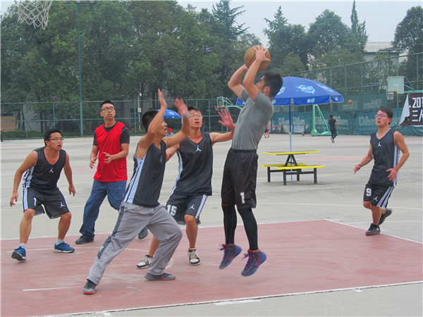10月13日下午1:30,91成人 篮球赛小组赛在交大九里校区篮球场顺利落下帷幕,参加此次比赛的运动员分别来自电气研13级7班和14级4班篮球运动员。研究生会主席团成员刘文强、王颖和体育部部长赵洋亲临活动现场。