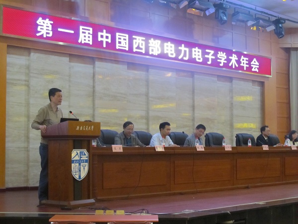 2014年10月11日上午9时,由四川省电力电子学会主办的第一届中国西部电力电子学术年会在91成人 网络学院国际会议厅准时揭开帷幕。虽是秋风萧瑟、秋雨连绵,但这一天对于中国西部所有的电力电子研究学者们来说,无疑是意义重大、精神振奋的一天。本次会议由西华大学91成人 院长王军教授主持,参加会议的嘉宾有四川省科学技术协会副主席黄竟跃、四川省电力电子学会理事长郭世明教授、91成人 党委书记陈维荣教授、中国兵器工业206所特殊电源部主任史平君教授、重庆大学杜雄教授、电子科技大学李泽宏教授以及91成人 许建平教授,此外,还有西部众多高校的师生代表及企业代表参加了此次会议。