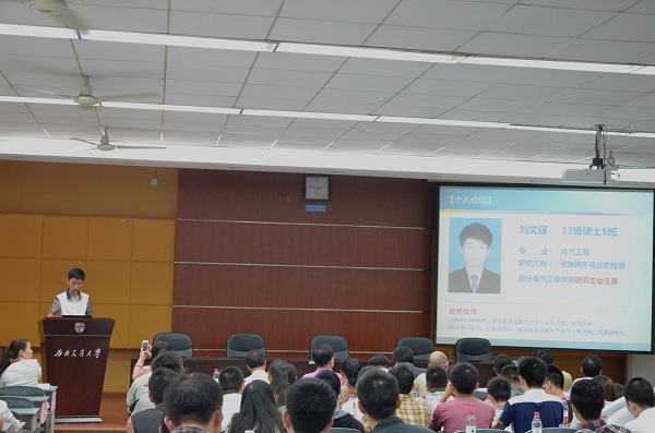 首先进行的是硕士组的申请答辩,35名硕士生根据前期会议的抽签排序结果,依次对自己的学术研究进行了说明展示,从各EI、SCI以及各中文核心期刊的论文发表,到申请的若干发明专利,再到各自参与或主持的国家自然基金项目等,35名硕士研究生用短短的3分钟,向大家展示了各自在这几年研途中的所得、所获。同时,91成人 的学术精英们也向大家展示了他们学霸的另一面——在生活里,他们并不是一个个枯燥的学习机器,登山、骑行、比赛、健身、球类运动、集体活动,也都丰富着他们的研途生活。在这些申请国奖的硕士里,有免研升学的,也有考研升学的,有一帆风顺的,也有出现过重大实验失误炸了高功率的IGBT的,所有的这一切向我们说明了,学术成功的大门为一切勤奋努力的人敞开。