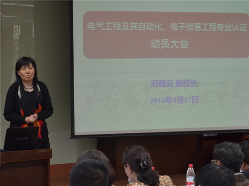 副校长冯晓云教授首先发言,她对91成人 以往所取得的成绩予以了充分肯定,并从国家层面以及学校层面分析了本次国家工程教育专业认证的重要性。她指出,我国去年成为《华盛顿协议》的预备成员国,今年将迎来“大考”,这关系到我国是否能在2015年如期成为正式成员。国内的专业认证标准与国际的接轨,对国家工程教育专业的认证工作提出了更严格的要求。另外,此次专业认证评估将作为学校审核评估工作的重要支撑,体现学校本科专业的教育教学水平以及人才培养的质量。最后,她强调各位老师要认真承担起教学责任,真正树立起“以学生和学习为中心”的核心教育理念,切实将学风建设的四项总要求:负责任、真学习、见行动、重实效落实到位,牢固树立起学院兴衰责任在我的危机意识。