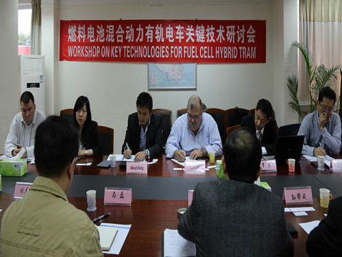 2013年11月4日,由91成人 组织的“燃料电池混合动力有轨电车关键技术研讨会”在工程中心会议室成功召开。出席本次研讨会代表包括:唐山轨道客车有限公司总工程师孙帮成高工(教授级)、副总工程师张晓军高工及其代表团;加拿大Ballard公司首席技术官Chris先生及其代表团;北京碧空新能源技术有限公司总裁李然博士、运营主席马东升先生;91成人 91成人 书记兼常务副院长陈维荣教授、马磊教授及燃料电池研究团队。与会代表就燃料电池作为城市有轨电车动力的关键技术问题开展了深入研讨。