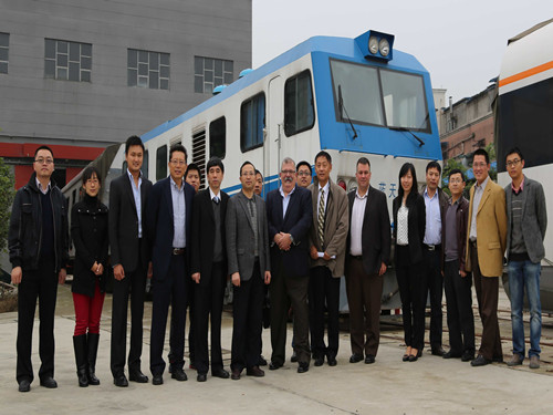 与会代表首先参观了由陈维荣教授团队研发成功的国内第一辆燃料电池电动机车“蓝天”号,陈维荣教授对该机车的研制情况进行了介绍,与会代表给予了高度评价。在其后举行的研讨会上,陈维荣教授、孙帮成总工、Chris先生、李然总裁等分别致辞并介绍了相关情况。学院刘志祥研究员介绍了燃料电池机车、燃料电池混合动力有轨电车的研制情况,唐车公司李明博士介绍了低地板有轨电车及蓄电池/超级电容有轨电车的发展情况。参会代表就Ballard公司的新型燃料电池模块技术、有轨电车集成技术、混合动力技术等问题开展了深入讨论。Ballard公司是全球最大的质子交换膜燃料电池研发与生产企业,其燃料电池产品已在全球多个国家得到成功应用。Chris先生表示,未来可根据有轨电车的特殊需求开发轨道交通专用燃料电池模块。经过本次会议充分商讨,参会各方已达成共识,将加强各方紧密合作,共同推进燃料电池有轨电车的商业化进程。