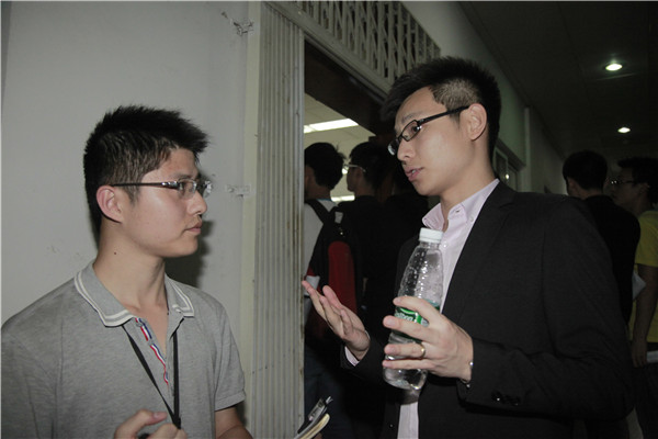 在选择职业的时候,刘臣先生给了几点建议:“首先要先选择行业,行业非常重要,行业直接决定公司的前途;对自身来说,要分清自己的优劣势。保持优势同时制定计划去弥补自己的劣势,要认清楚自身的特点不要盲从别人的选择,要选择适合自己的职业,扬长避短。”同时刘经理对在公司里工作的学生存在的问题也给出了客观的评价:“不少学生的适应能力、学习能力和独立性以及自主性是有差距的。学生如何迅速改变角色,融入工作环境需要进一步的锻炼。”