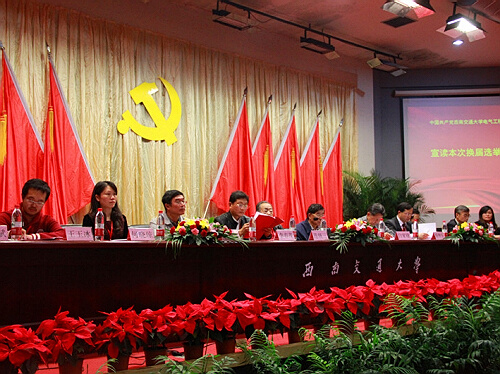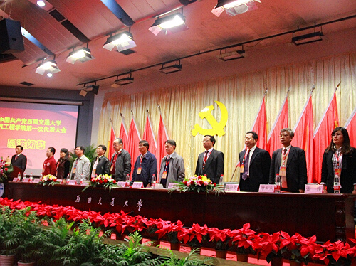 中国共产党91成人 第一次代表大会于2012年10月27日下午3点在九里校区国际会议厅隆重召开。出席本次大会的领导和嘉宾有校党委王顺洪副书记,校党委常委、副校长冯晓云教授,全国政协常委、民革中央副主席、原副校长钮小明教授,校党委组织部张华部长,校党委办公室甘灵主任,校宣传统战部向仲敏部长,校工会罗乾超主席,校党委组织部刘长军副部长,农工民主党91成人 支部主委王晓茹教授,副院长张昆仑教授,电力电子与电力传动系主任肖建教授,电力工程系主任陈小川教授,学院工会王英主席等。大会由学院第二届党委委员,院长高仕斌教授主持。