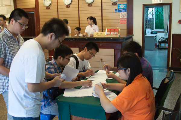 7月17日上午,2012电气工程全国研究生暑期学校交大东门宾馆报到点迎来了第一批学员。签到、领取材料、办理入住手续,在工作人员的热情接待下,学员们很快完成了各项报到手续,进入安排的房间休息,缓解一路远行的疲惫。