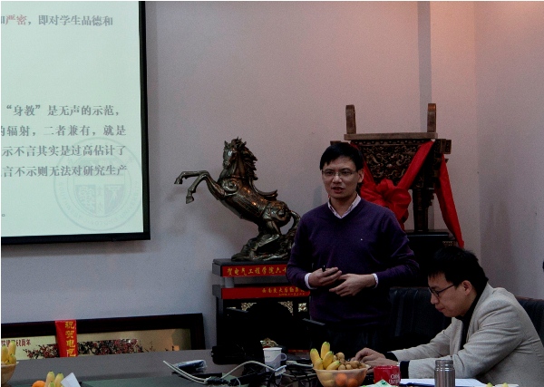 王兴龙书记在听取了三位教授的发言后对老师们的教育理念和一系列的研究生培养措施表示了肯定和赞许。他强调了提高研究生质量的意义和重要性。王书记还表示,新的教育机制出台后,导师已作为研究生培养的第一责任人,对研究生的成长成才有着举足轻重的作用。