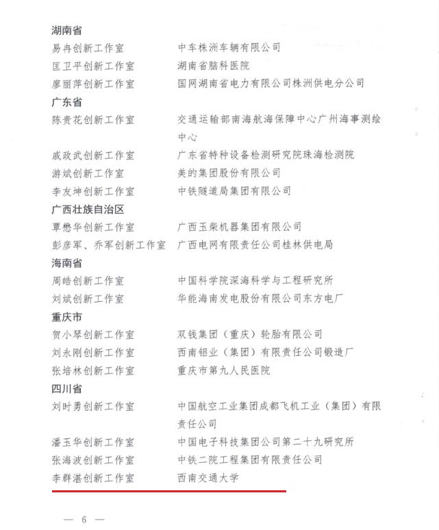 据悉,为大力弘扬劳模精神、劳动精神、工匠精神,营造劳动光荣的社会风尚和精益求精的敬业风气,激励广大职工勤于创造、勇于奋斗,努力在新时代新征程上创造新业绩、展现新作为,中华全国总工会每3年开展一次全国示范性劳模和工匠人才创新工作室命名活动,每次命名100个。经层层选拔,四川省教科文卫工会推荐,四川省“十佳”劳模和工匠人才创新工作室创建交流互检,最终四川省总工会成功推荐,包括我校李群湛创新工作室在内的四家单位,为全国示范性劳模创新工作室和工匠人才创新工作室。
